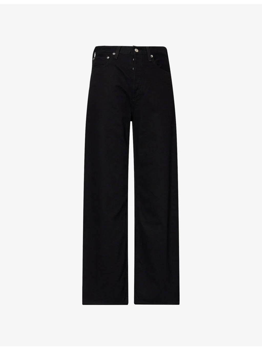 PRODUCT DETAILS - AGOLDE denim jeans - 100% cotton - Exposed button and concealed zip-fly fastening at front - Regular fit, high-rise, tapered leg, structured waistband with belt loops, five pockets, silver-toned branded hardware - Machine wash at 30°C - True to size - Size 26: rise 12in / 30.5cm, inside leg 30in / 76.5cm, leg opening 17in / 43cm - Model is 5ft 10in/1.78m and wears a size 26 - Midweight, non-stretch Ref: R04540460