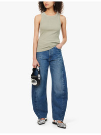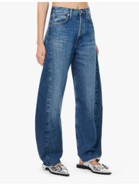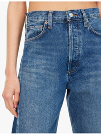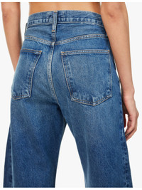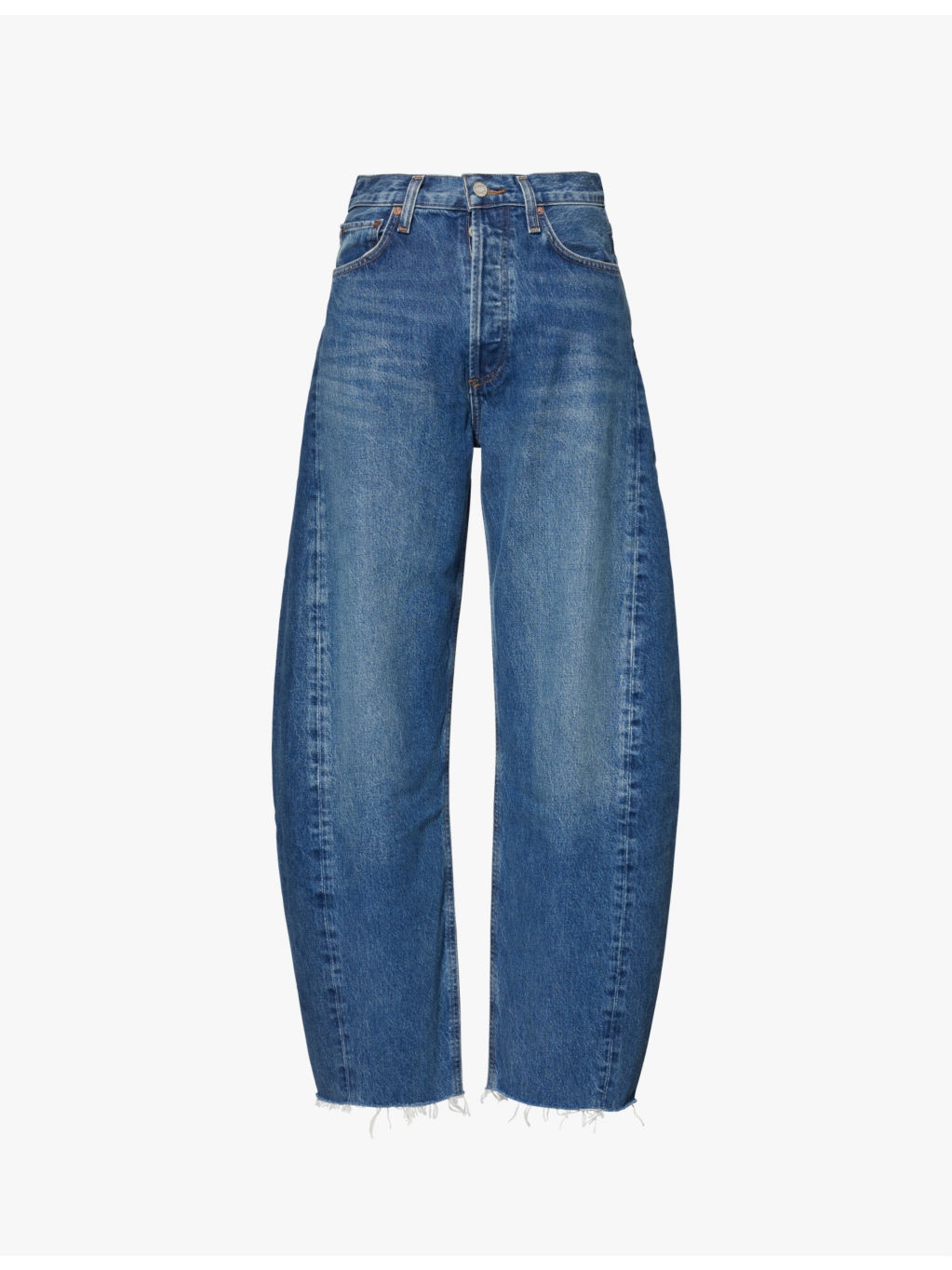 PRODUCT DETAILS - AGOLDE organic-denim blend jeans - 67% organic cotton, 22% recycled lyocell, 11% recycled cotton - Exposed button and concealed button-fly fastening at front - Relaxed fit, high-rise, wide leg, belt loops, five pockets, faded wash and whiskering, raw cuffs - Machine wash cold - Made in Turkey - True to size - Size 26: rise 13in / 34cm, inside leg 29in / 74cm, leg opening 16in / 41cm - Model is 5ft 10in/1.78m and wears a size 26 - Midweight, stretchy Ref: R04347952