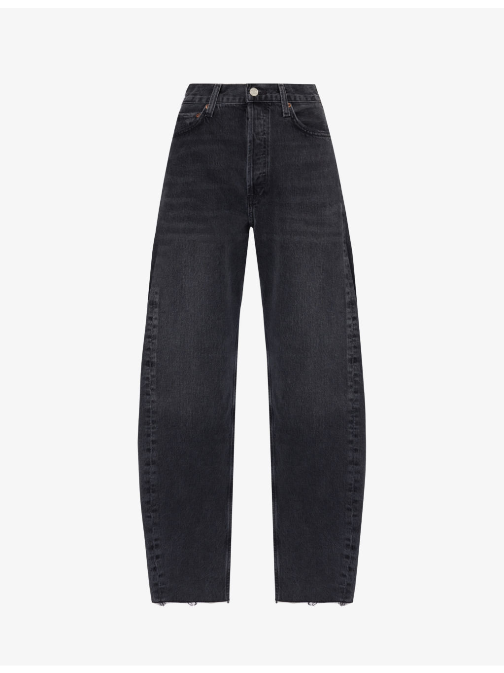 PRODUCT DETAILS - AGOLDE organic-denim jeans - 100% organic cotton - Exposed button and concealed button-fly fastening at front - Relaxed fit, high-rise, straight leg, belt loops, five pockets, faded wash, straight cuffs - Machine wash cold - True to size - Size 26: rise 13in / 34cm, inside leg 30in / 76cm, leg opening 16in / 41cm - Model is 5ft 10in/1.78m and wears a size 26 - Midweight, slight stretch