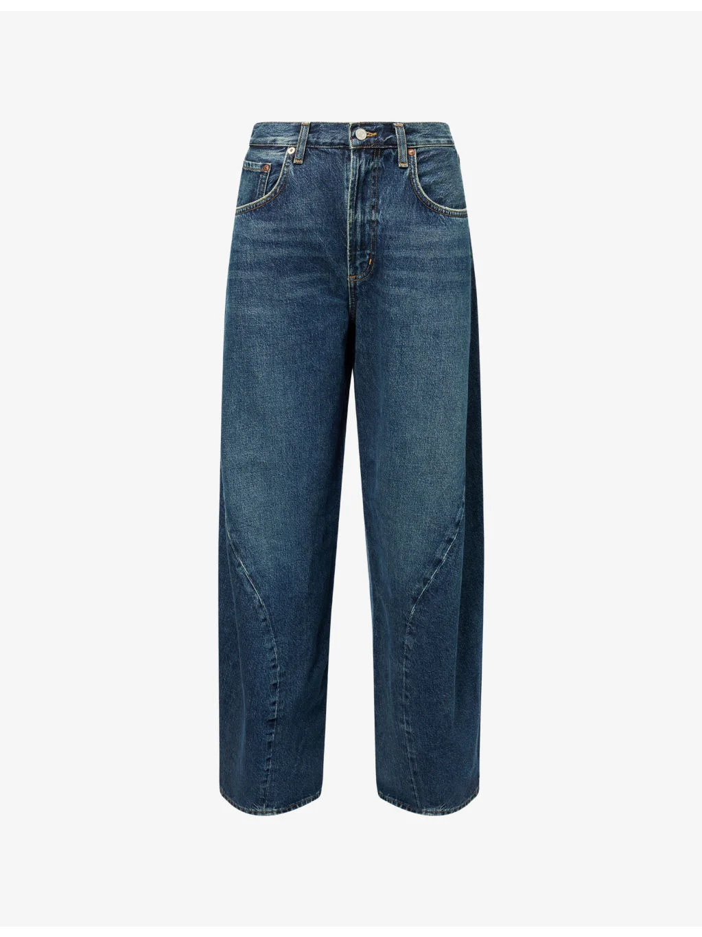 PRODUCT DETAILS - AGOLDE denim jeans - 100% cotton - Button and zip-fly fastenings - Relaxed fit, high-rise, wide leg, belt loops, five pockets - Machine wash cold - Made in Turkey - True to size - Size 26: rise 12.5in / 32cm, inside leg 29.5in / 75cm, leg opening 20in / 51cm - Model is 5ft 10in/1.78m and wears a size 26 - Midweight, non-stretch Ref: R04540448