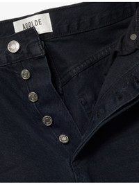 PRODUCT DETAILS - AGOLDE organic-cotton denim jeans - 100% organic cotton - Button and button-fly fastening - Regular fit, high rise, wide leg, belt loops, five pockets, branded hardware, whiskering, brand patch at back, V-shaped yoke at back - Machine wash cold - True to size - Size 26: rise 12in / 26cm, inside leg 27in / 69cm, leg opening 18in / 46cm - Model is 5ft 10in/1.78m and wears a size 26 - Midweight, non-stretch Ref: R04314363