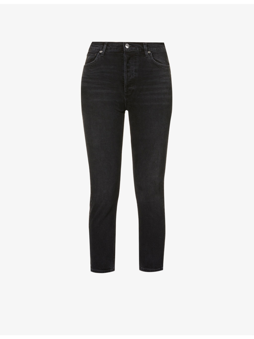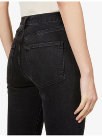 PRODUCT DETAILS - AGOLDE stretch organic-cotton-blend denim jeans - 50% organic cotton, 40% viscose, 1% elastane - Exposed button and concealed button-fly fastenings at front - Regular-fit, high-rise, straight leg, belt loops, branded silver-toned hardware, five pockets, V-shaped yoke at back, partially lined, cropped - Machine wash cold - True to size - Size 26: rise 12in / 31cm, inside leg 24in / 61cm, leg opening 14in / 36cm - Model is 5ft 10in/1.78m and wears a size 26 - Midweight, non-stretch