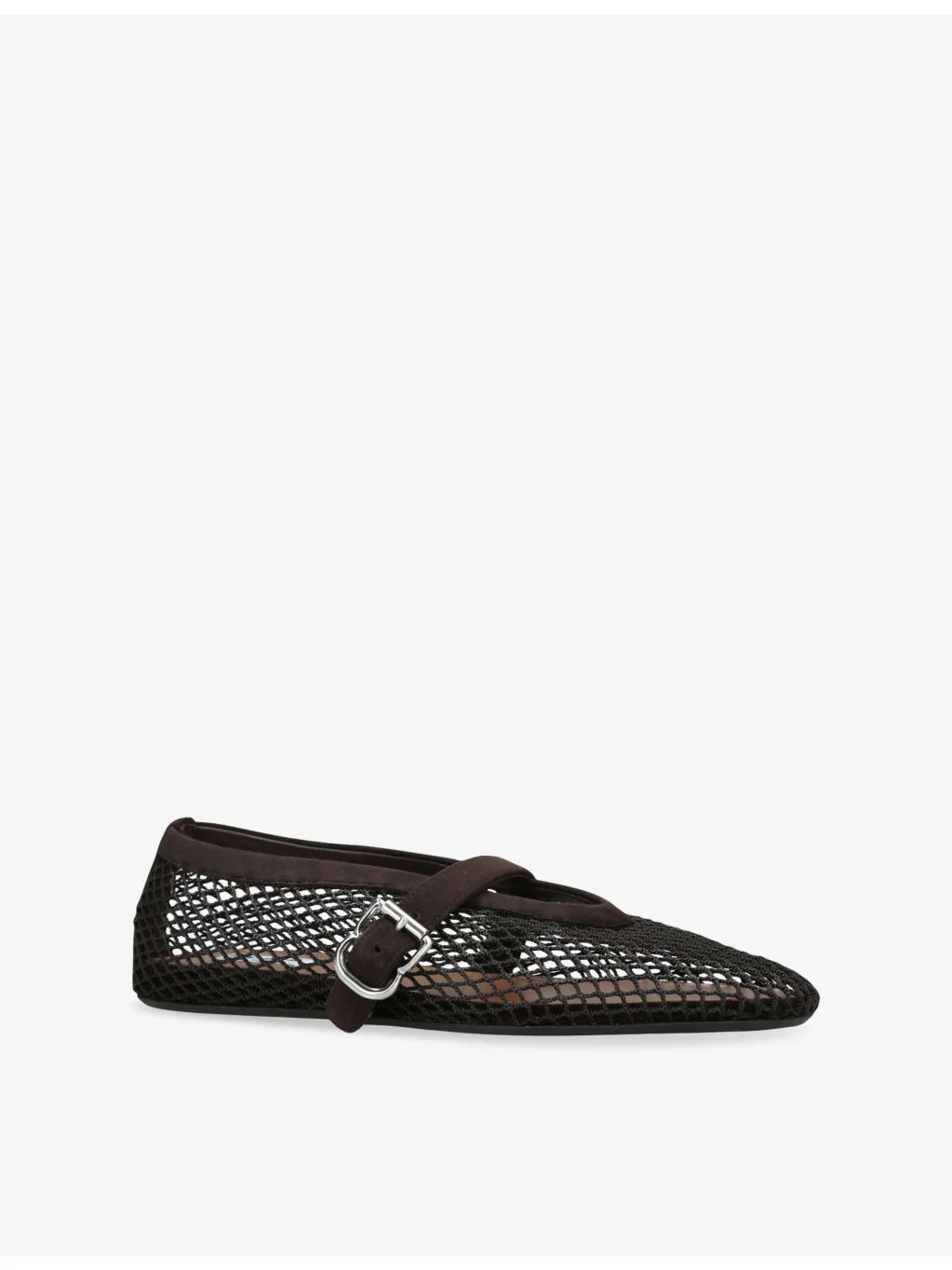 PRODUCT DETAILS - Azzedine Alaia mesh and suede ballet flats - 100% mesh and leather - Ankle-buckle fastening - Round closed toe, single strap, branded footbed, silver-toned hardware, fishnet mesh texture - Wipe with a clean, dry cloth - Upper: 100% mesh and leather - Lining: 100% leather - Sole: 100% rubber Ref: R04474446