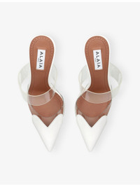 PRODUCT DETAILS - Azzedine Alaia patent-leather and PVC wedge mules - 100% leather; 100% PVC - Pointed closed toe, patent heart-shaped panel at toe, transparent panel, open back, wedge heel - Heel height 90mm / 3.5 inches - Wipe with a clean, dry cloth - Upper: 100% leather; 100% PVC - Lining: 100% leather - Sole: 100% leather Ref: R04561084