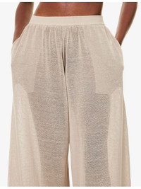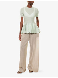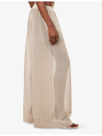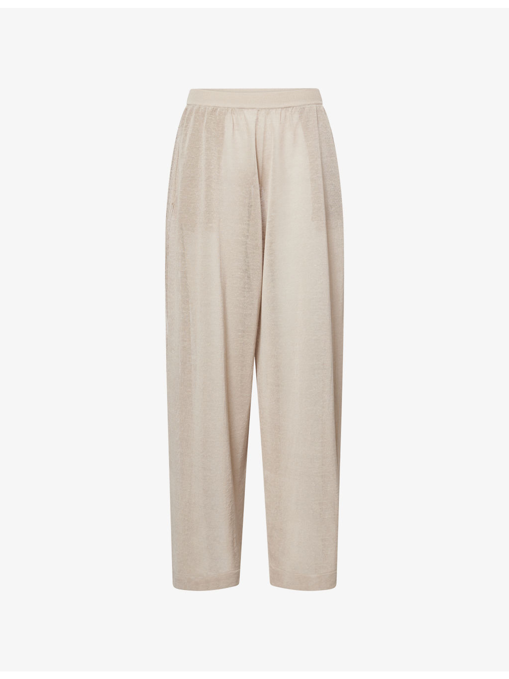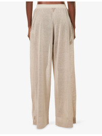 PRODUCT DETAILS - Alaia linen and silk trousers - 90% linen, 10% silk; contrast 85% linen, 9% silk, 5% polyamide, 1% elastane - Relaxed fit, high-rise, wide leg, ribbed waistband, all-over fine-knit pattern - Dry clean - Made in Italy - True to size - Size UK 8: rise 13in / 34cm, inside leg 30in / 77cm, leg opening 30in / 76cm - Model is 5ft 10in/1.78m and wears a size UK 8 - Lightweight, stretchy Ref: R04466808