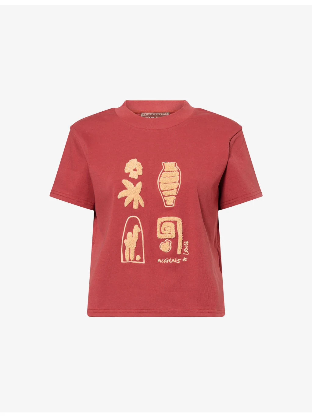 PRODUCT DETAILS - Alemais cotton-blend T-shirt - 70% cotton, 30% polyester - Regular fit, round neck, short sleeves, graphic embroideries at front - Hand wash cold - True to size - Model is 5ft 10in/1.78m and wears a size small - Lightweight, slight stretch Ref: R04602548