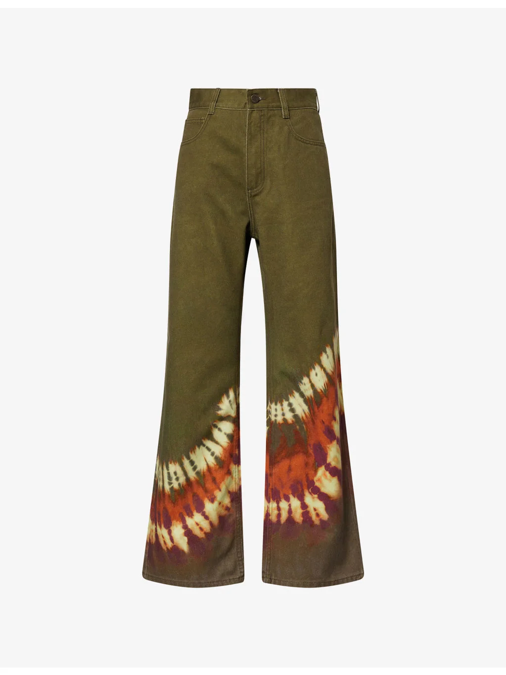 PRODUCT DETAILS - Alemais denim jeans - 100% cotton - Button and zip-fly fastenings at front - Regular fit, mid-rise, wide leg, belt loops, five pockets, tie-dye pattern at front and back - Machine wash at 30°C - True to size - Size UK 8: rise 12.5in / 32cm, inside leg 28in / 71cm, leg opening 19in / 49cm - Model is 5ft 10in/1.78m and wears a size UK 8 - Midweight, non-stretch Ref: R04602531