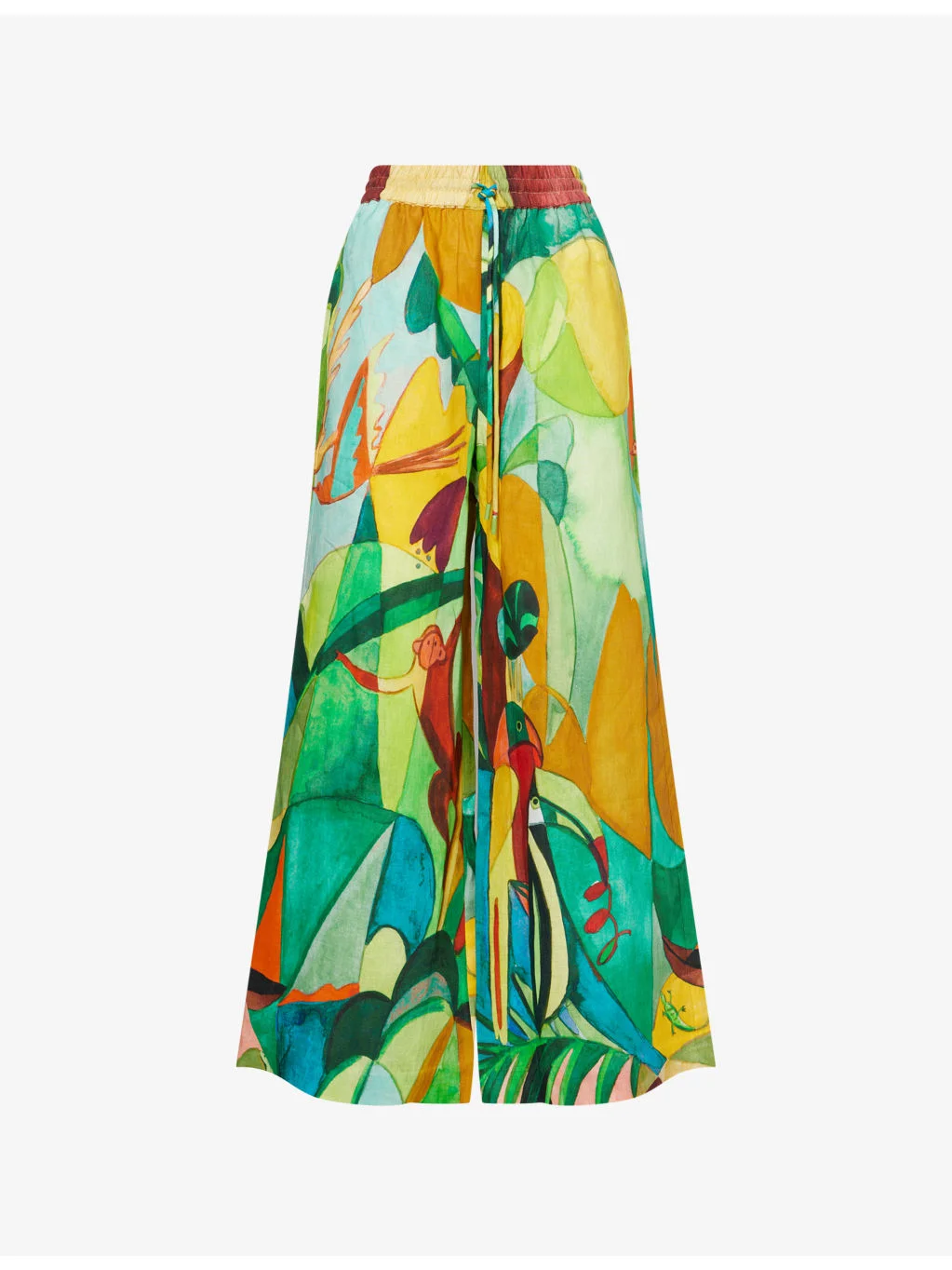 PRODUCT DETAILS - Alemais linen trousers - 100% linen - Pulls on - Wide leg, elasticated waistcoat, side pockets, printed - Dry clean - True to size - Model is 5ft 10in/1.78m and wears a size UK 8 - Midweight, non-stretch Ref: R04592758