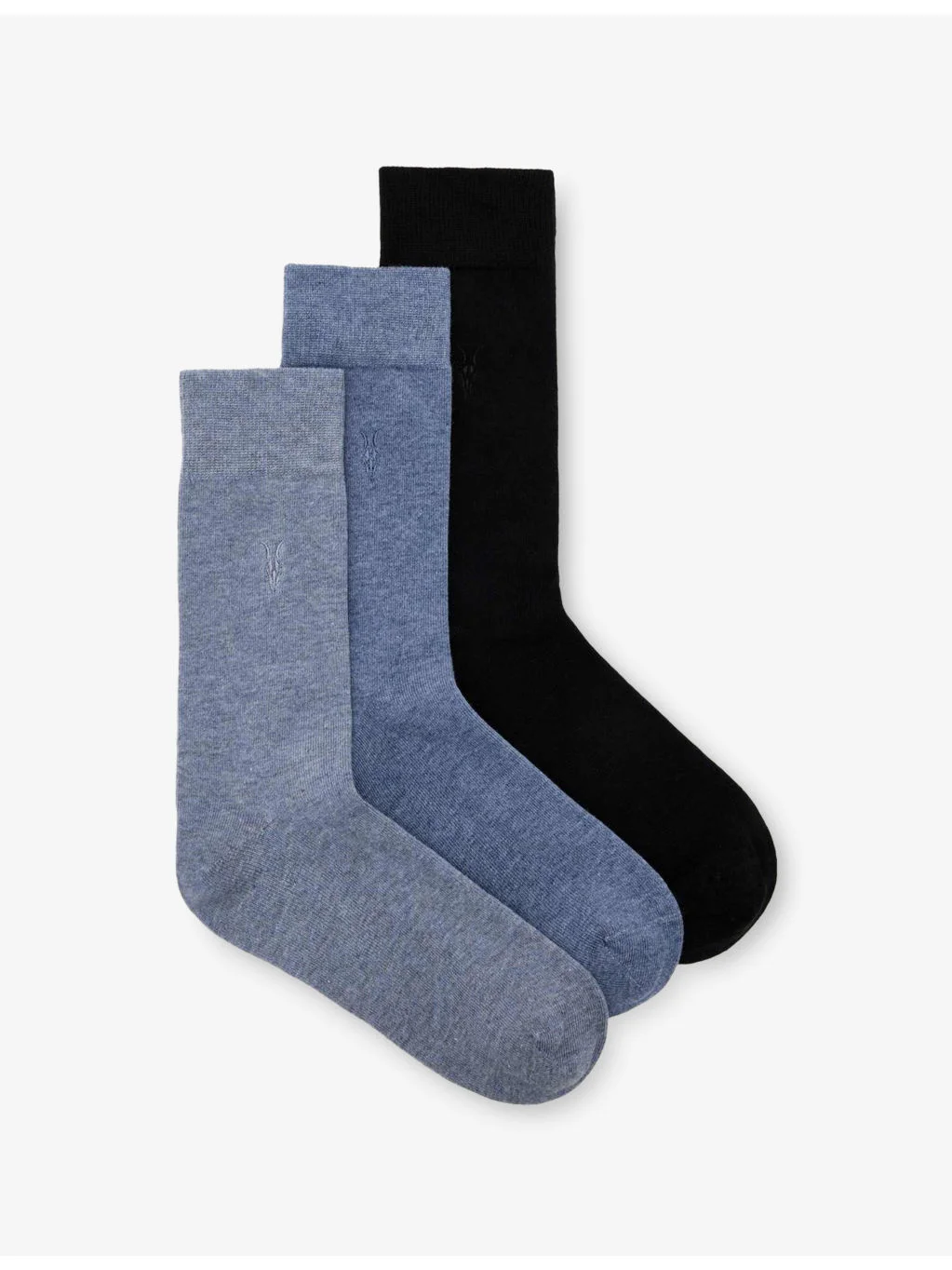 PRODUCT DETAILS - AllSaints stretch cotton-blend socks pack of three - 78% cotton, 20% polyamide, 2% elastane - Pack of three, Ramskull embroidery, ribbed trim - Machine wash at 30°C - Midweight, slight stretch Ref: R04299233
