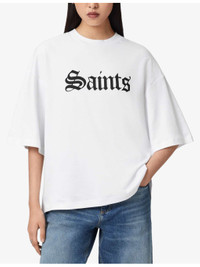 PRODUCT DETAILS - AllSaints cotton-jersey T-shirt - 100% cotton - Oversized fit, round-neck, short sleeves, branded print to chest - Machine wash mild - True to size - Model is 5ft 10in/1.78m and wears a size small - Lightweight, slight stretch Ref: R04515115
