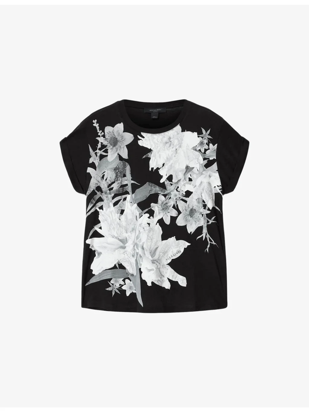 PRODUCT DETAILS - AllSaints cotton T-shirt - 100% cotton - Relaxed fit, crewneck, short sleeves, all-over graphic print - Machine wash at 30°C - True to size - Model is 5ft 10in/1.78m and wears a size small - Lightweight, non-stretch Ref: R04525752