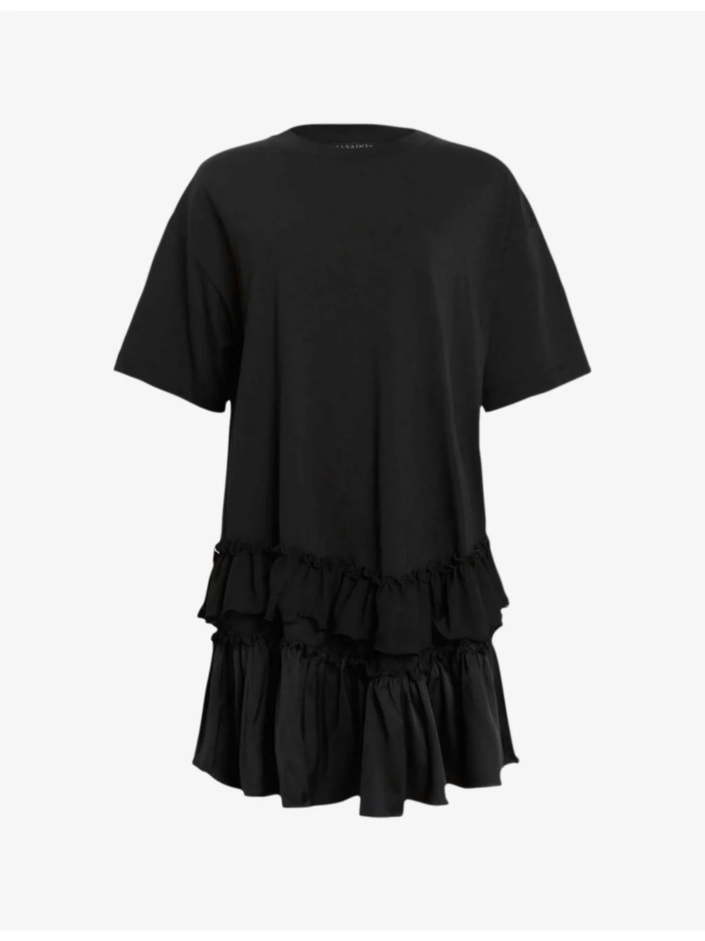 PRODUCT DETAILS - AllSaints cotton dress - 100% cotton - Relaxed fit, crewneck, short sleeves, frill hem - Machine wash at 30°C - True to size - Model is 5ft 8in /1.73m and wears a size 8 - Midweight, non-stretch Ref: R04435711