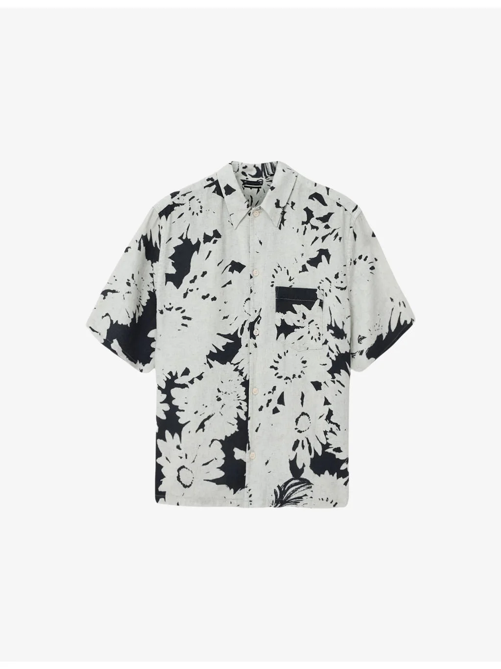 PRODUCT DETAILS - AllSaints cotton and linen-blend shirt - 85% cotton, 15% linen - Exposed button fastening at front - Boxy fit, classic collar, patch pocket at chest, all-over floral print - Machine wash at 30°C - Lightweight, non-stretch Ref: R04524629