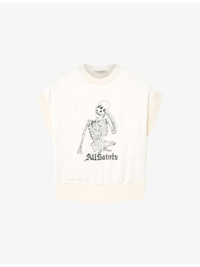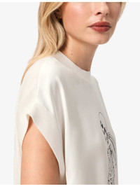 PRODUCT DETAILS - AllSaints knitted T-shirt - 100% polyester - Relaxed fit, round neck, short sleeves, graphic print at the front, ribbed trims - Machine wash mild - True to size - Midweight, non-stretch Ref: R04524553