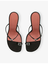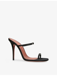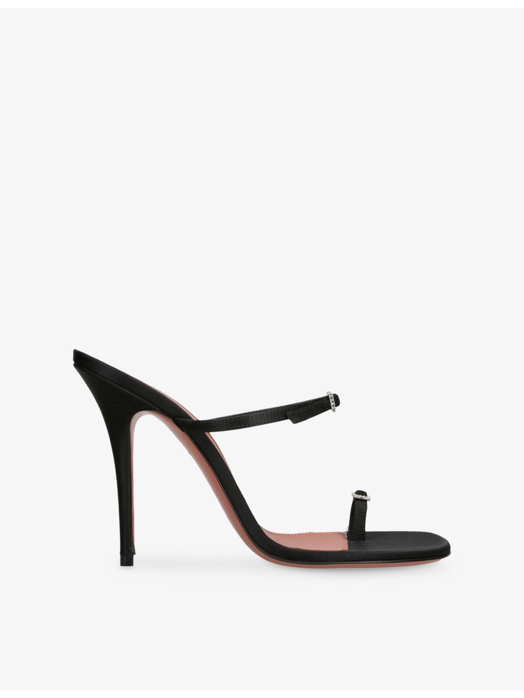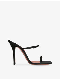 PRODUCT DETAILS - Amina Muaddi leather heeled sandals - 100% calfskin - Slips on - Open round toe, front straps with buckle, stiletto heel - Heel height 4.1in - Specialist leather clean - Upper: 100% leather - Lining: 100% leather - Sole: 100% leather Ref: R04459740