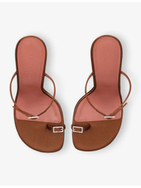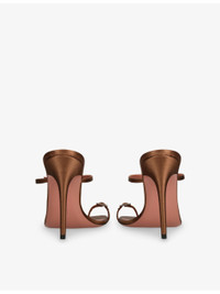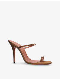 PRODUCT DETAILS - Amina Muaddi leather heeled sandals - 100% calfskin - Slips on - Open round toe, front straps with buckle, stiletto heel - Heel height 4.1in - Specialist leather clean - Upper: 100% leather - Lining: 100% leather - Sole: 100% leather Ref: R04459741