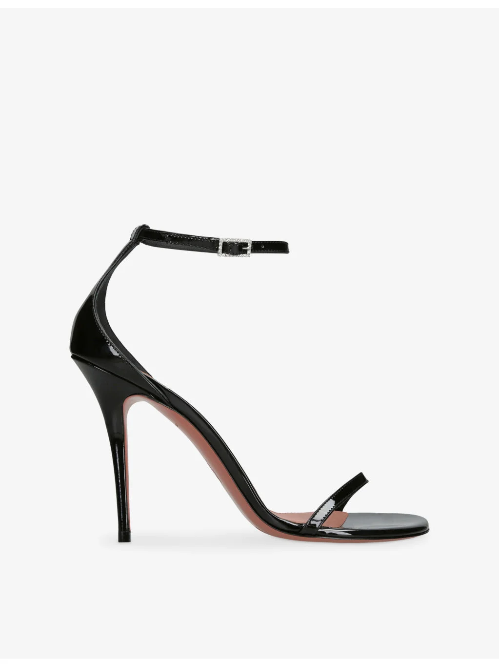 PRODUCT DETAILS - Amina Muaddi patent-leather heeled sandals - 100% patent leather - Ankle-buckle fastening - Almond open toe, adjustable ankle strap, gold-toned buckle, branded footbed, high stiletto heel, patent finish - Heel height 105mm / 4.13in - Specialist leather clean - Made in Italy - Upper: 100% patent leather - Lining: 100% leather - Sole: 100% leather Ref: R04514314