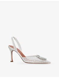 PRODUCT DETAILS - Amina Muaddi mesh courts - 100% synthetic - Pointed toe, slingback strap, embellishment to toe, high heel, all-over polka-dot pattern - Heel height 3.5"" - Wipe with a clean, dry cloth - Upper: 100% synthetic - Lining: 100% synthetic - Sole: 100% leather Ref: R04514319
