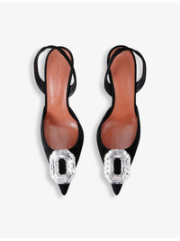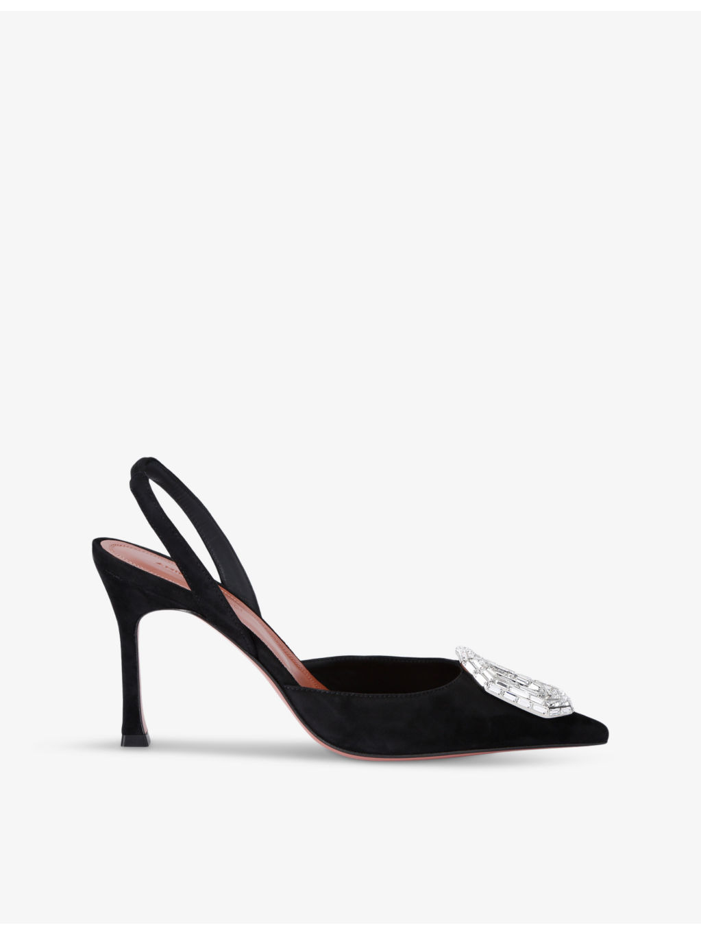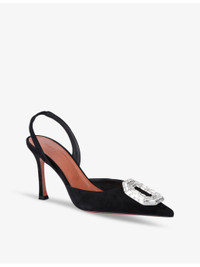 PRODUCT DETAILS - Amina Muaddi suede slingback courts - 100% suede - Slips on - Closed pointed toe, crystal embellished, slingback ankle strap, kitten heel - Heel height 3.5"" - Specialist leather clean - Made in Italy - Upper: 100% suede - Lining: 100% leather - Sole: 100% leather Ref: R04234436