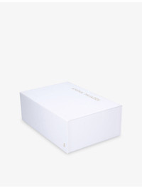 PRODUCT DETAILS - Amina Muaddi leather heeled mules - 100% leather - Square open toe, backless, asymmetric strap flared heel - Heel height 95mm / 3.74in - Specialist leather clean - Made in Italy - Upper: 100% leather - Lining: 100% leather - Sole: 100% leather Ref: R04459767
