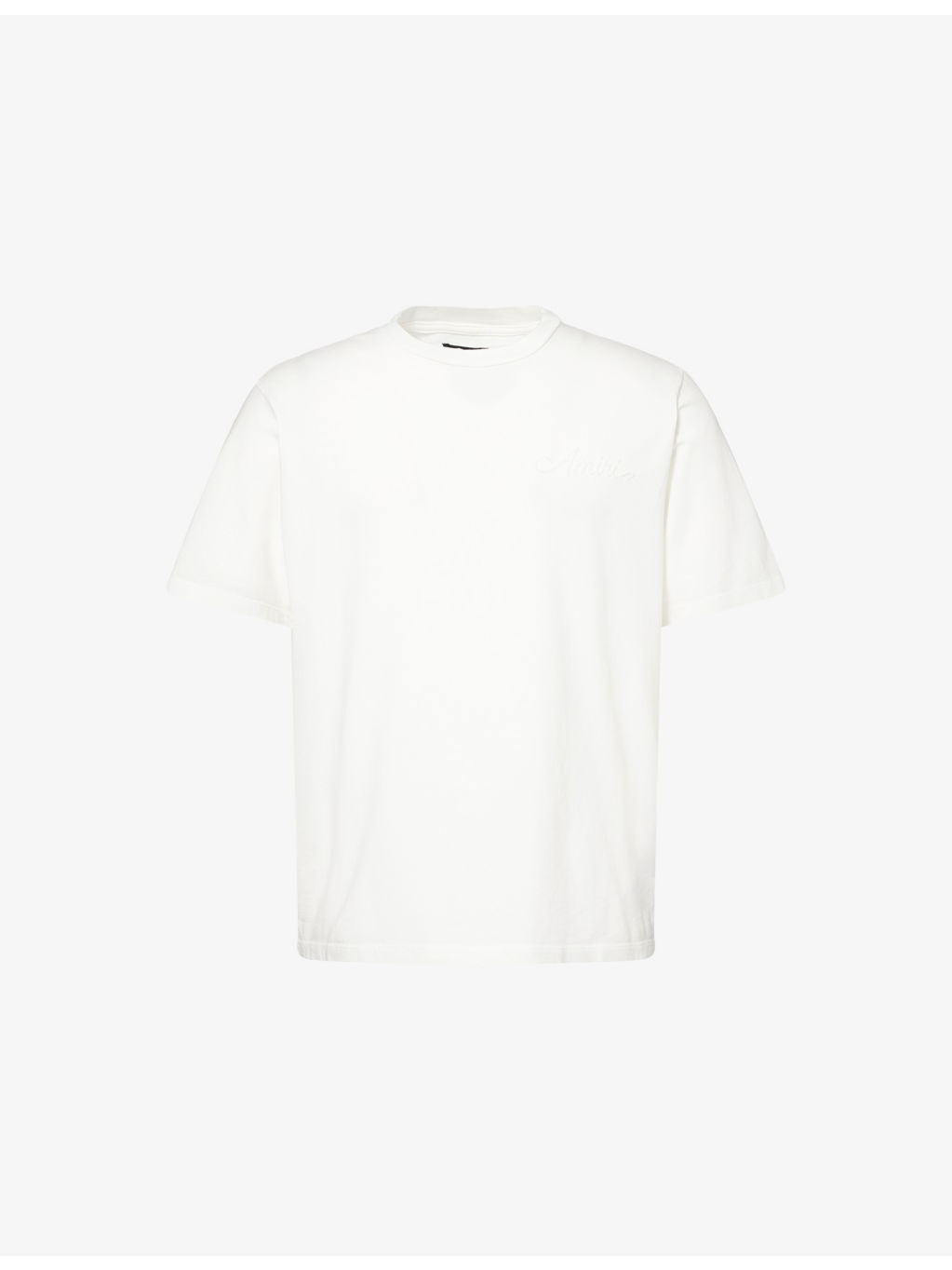 PRODUCT DETAILS - AMIRI cotton-jersey T-shirt - 100% cotton; trims 100% cotton - Relaxed fit, ribbed crewneck, short sleeves, embossed branding at front, brand embroidery and bandana patch at back - Dry clean - Made in Italy - Model is 6ft 2in/1.88m and wears a size medium - Lightweight, stretchy Ref: R04481580