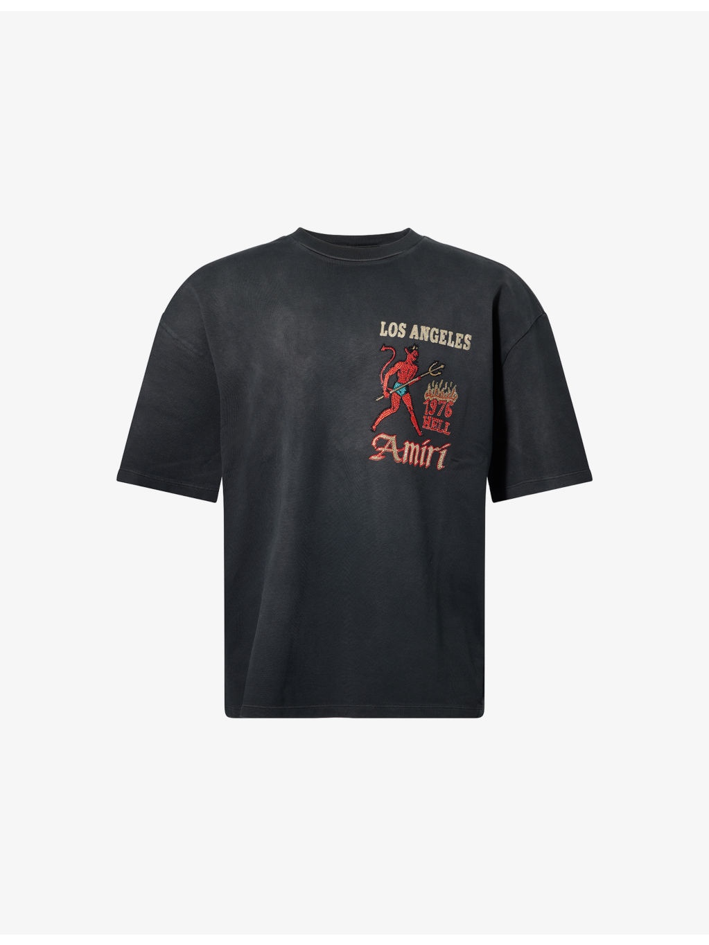 PRODUCT DETAILS - AMIRI cotton-jersey T-shirt - 100% cotton - Regular fit, crewneck, short sleeves, crystal-embroidered embellishment at front - Dry clean - Made in Italy - Model is 6ft 2in/1.88m and wears a size medium - Lightweight, slight stretch Ref: R04481590