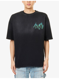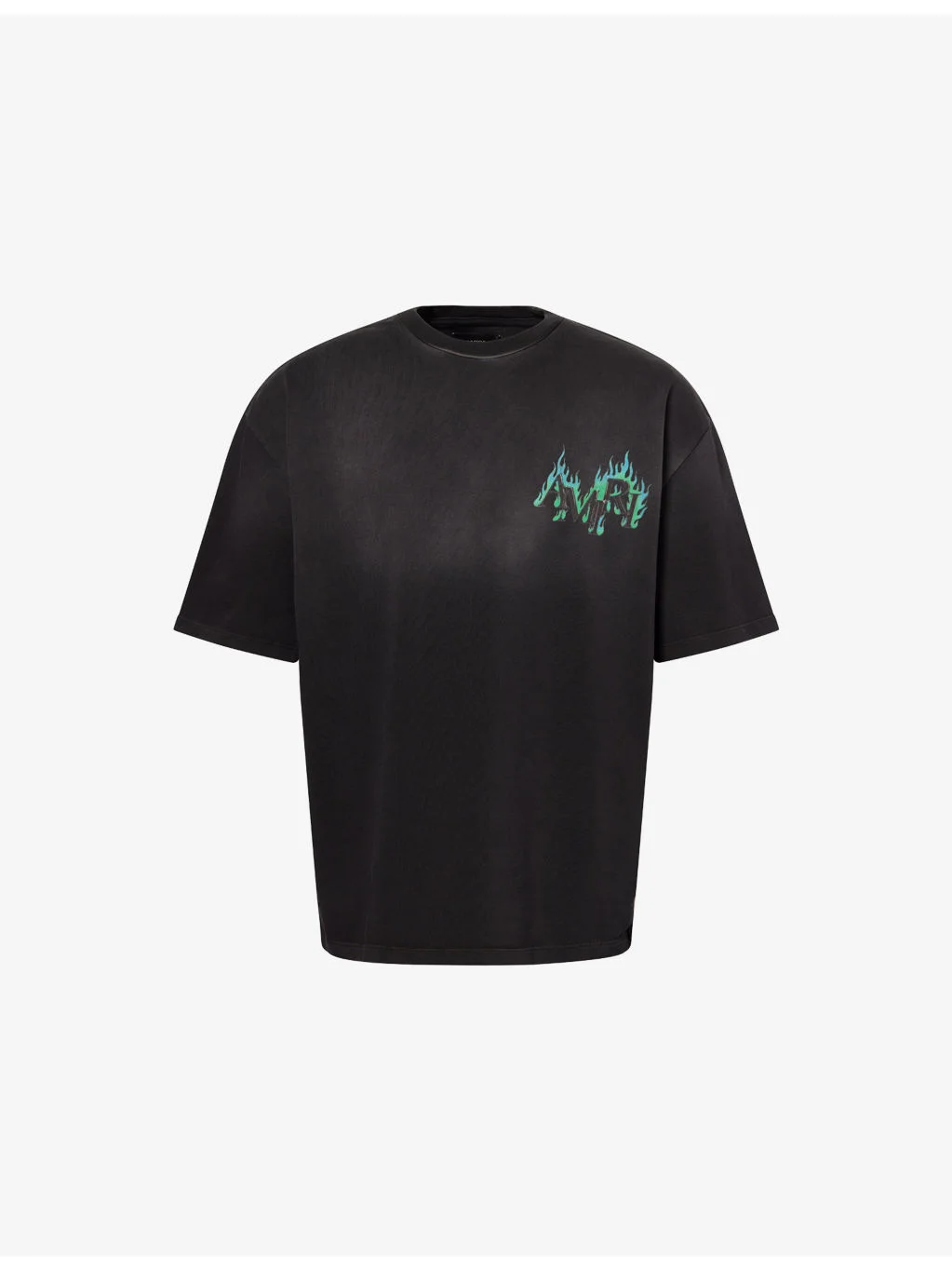 PRODUCT DETAILS - AMIRI cotton-jersey T-shirt - 100% cotton; trims 95% cotton, 5% elastane - Oversized, crewneck, short sleeves, brand and flames print at front and back, faded wash - Dry clean - Made in Italy - Model is 6ft 2in/1.88m and wears a size medium - Midweight, stretchy Ref: R04548531