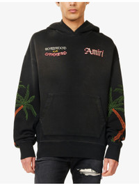 PRODUCT DETAILS - AMIRI cotton-jersey hoodie - 100% cotton - Relaxed fit, hood, long sleeves, kangaroo pocket at front, all-over graphic embroideries, ribbed trims - Dry clean - Made in Italy - Model is 6ft 2in/1.88m and wears a size medium - Midweight, slight stretch Ref: R04481591