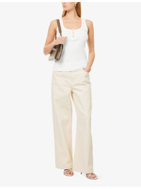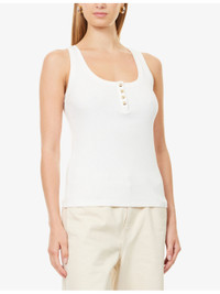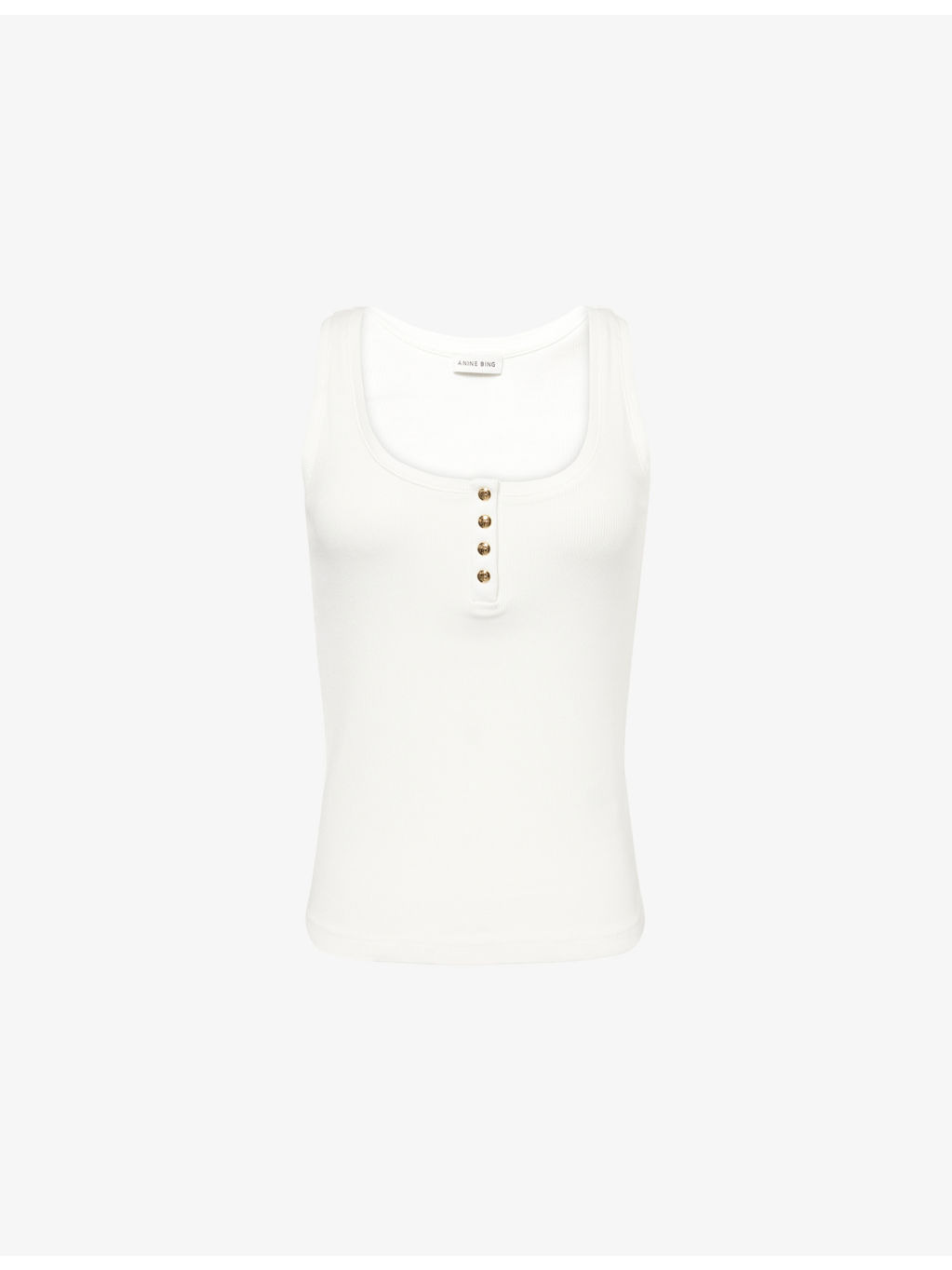 PRODUCT DETAILS - Anine Bing stretch-cotton top - 95% cotton, 5% elastane - Popper fastening at front - Slim fit, scoop neck, sleeveless, engraved brand buttons, all-over ribbed - Machine wash at 30°C - Made in Turkey - True to size - Model is 5ft 10in/1.78m and wears a size small - Lightweight, stretchy Ref: R04495365