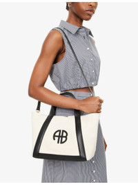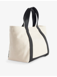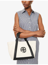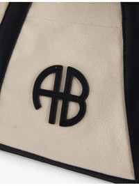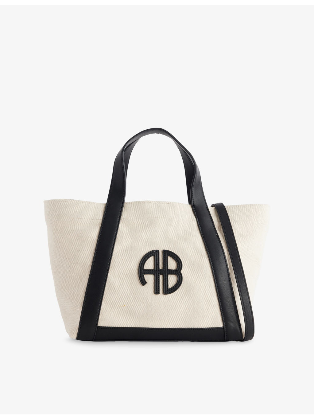 PRODUCT DETAILS - ANINE BING canvas tote bag - 100% canvas; trims 100% leather - Magnetic fastening - Rectangular shape, double top handles, detachable adjustable shoulder strap, monogram design applique at front, four protective feet at base, all-over canvas texture, leather trims, gold-toned hardware, one main compartment - Height 22cm, width 30cm, depth 18cm, handle drop 11cm, strap length 97cm, strap drop 41cm - Wipe with a clean, dry cloth Ref: R04495376