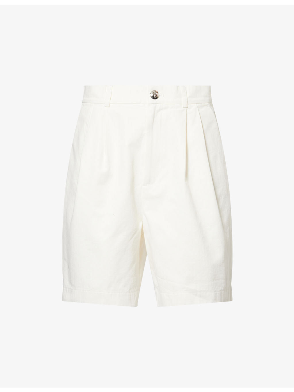 PRODUCT DETAILS - Anine Bing cotton shorts - 100% cotton - Button and zip-fly fastening - Relaxed fit, belt loops, side pockets, front pleats, back welt pockets, branded silver-tone hardware - Machine wash mild - Size small: rise 13in / 33cm, inside leg 7in / 17.7cm, leg opening 22in / 55.8cm - Model is 5ft 10in/1.78m and wears a size small - Midweight, non-stretch Ref: R04460764