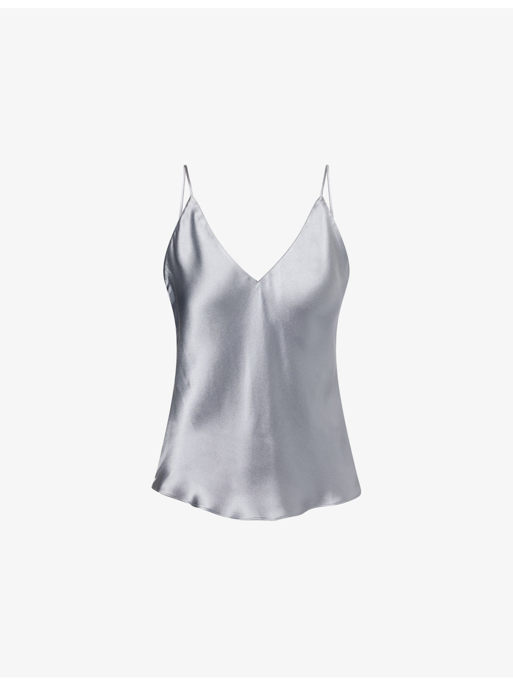 PRODUCT DETAILS - ANINE BING silk top - 100% silk - Relaxed fit, V0neck, shoulder straps, all-over satin texture - Dry clean - True to size - Model is 5ft 10in/1.78m and wears a size small - Lightweight, non-stretch Ref: R04525379
