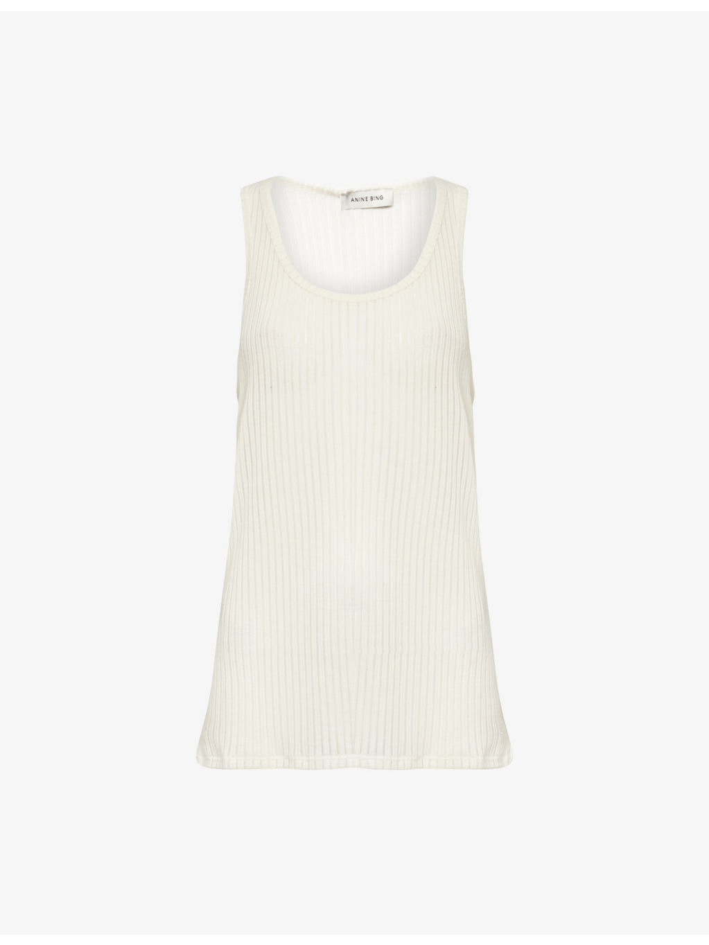 PRODUCT DETAILS - ANINE BING knitted top - 86% polyester, 14% viscose - Regular fit, scoop neck, sleeveless, all-over knitted and ribbed - Machine wash at 30°C - True to size - Model is 5ft 10in/1.78m and wears a size small - Lightweight, stretchy Ref: R04525385
