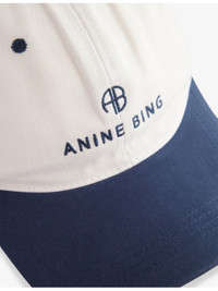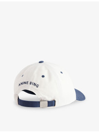 PRODUCT DETAILS - ANINE BING cotton baseball cap - 100% cotton - Adjustable buckle fastening at back - Six-panel design, curved peak, embroidered eyelets, logo embroidered at front and back, adjustable rear strap, silver-toned hardware, two-toned design - Machine wash cold - Made in Turkey - Lightweight, non-stretch Ref: R04495338