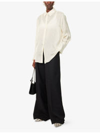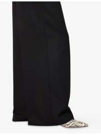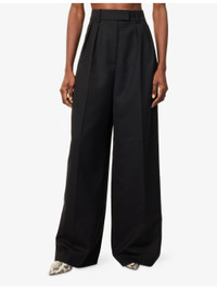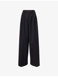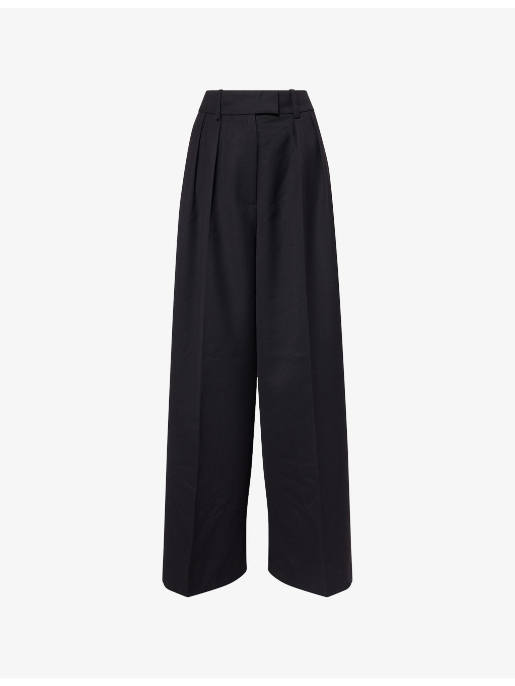 PRODUCT DETAILS - ANINE BING woven trousers - 52% polyester, 48% wool; lining 100% polyester - Concealed button, hook-and-eye and zip-fly fastening at front - Relaxed fit, high-rise, wide leg, belt loops, two slip pockets and pleated at front, welt pocket at back - Machine wash at 30°C - True to size - Size UK 8: rise in / 39cm, inside leg 32in / 81cm, leg opening 26in / 66cm - Model is 5ft 10in/1.78m and wears a size UK 8 - Midweight, slight stretch Ref: R04495360