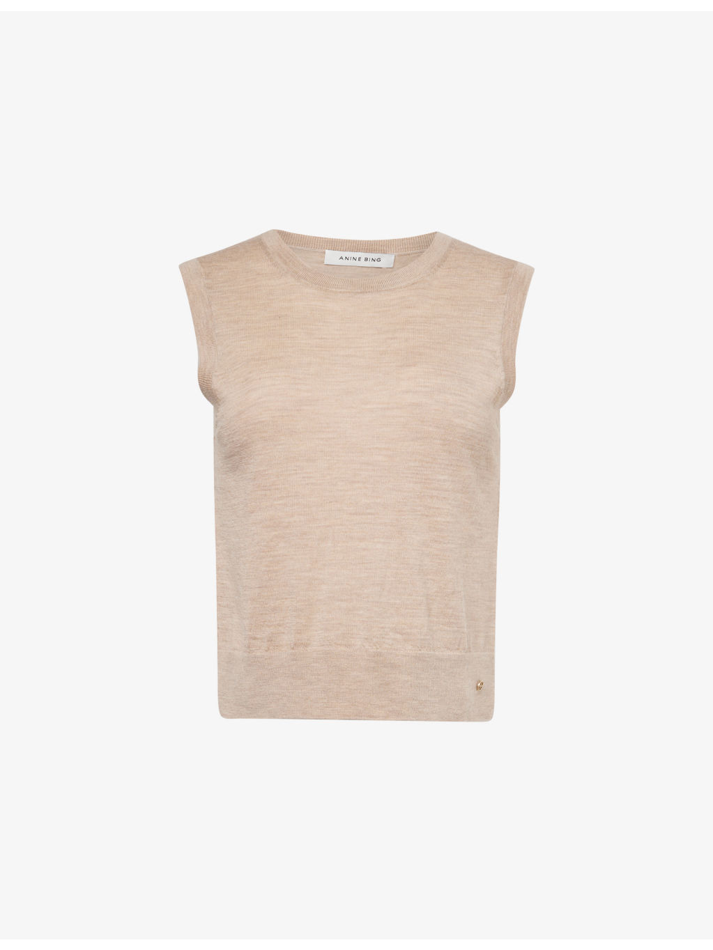 PRODUCT DETAILS - ANINE BING wool and cashmere top - 91% wool, 9% cashmere - Regular fit, round-neck, sleeveless, brand design plaque at front, all-over fine-knit pattern, ribbed trims - Hand wash cold - True to size - Model is 5ft 10in/1.78m and wears a size small - Lightweight, stretchy Ref: R04528440