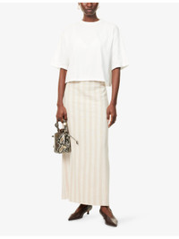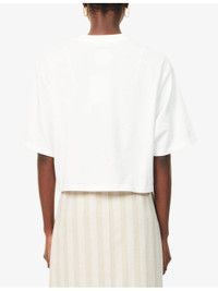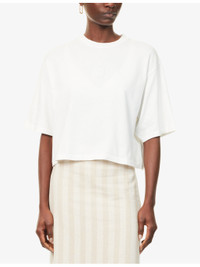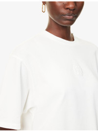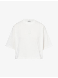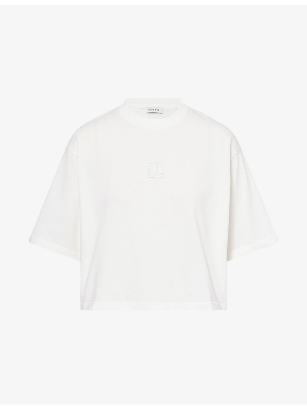 PRODUCT DETAILS - ANINE BING cotton-jersey T-shirt - 100% cotton - Relaxed fit, cropped, ribbed round-neck, short sleeves, monogram embroidery at front, embossed branding at back - Machine wash at 30°C - Made in Turkey - True to size - Model is 5ft 10in/1.78m and wears a size small - Lightweight, slight stretch Ref: R04495370