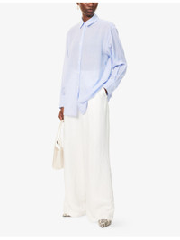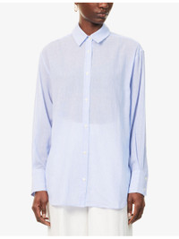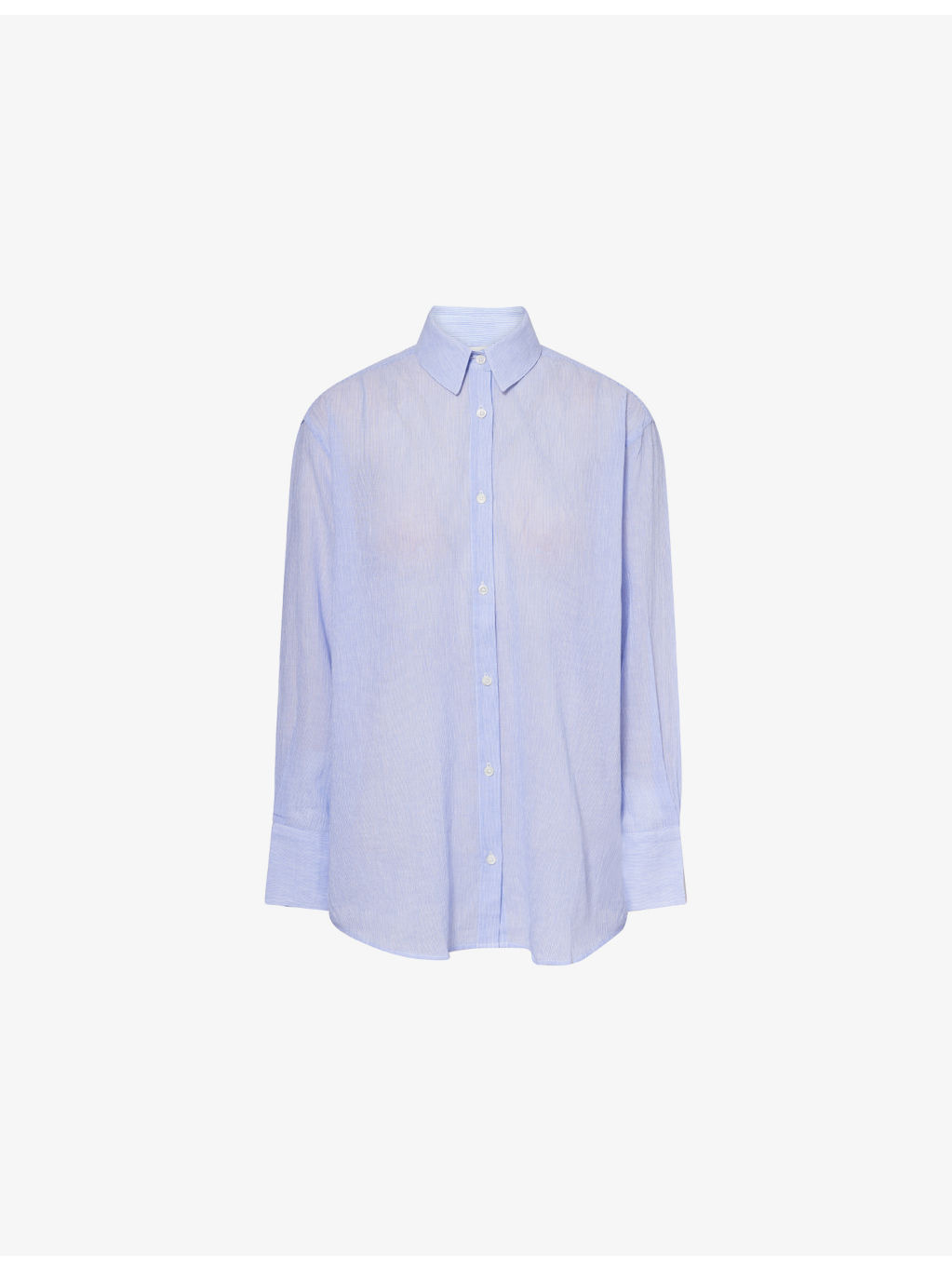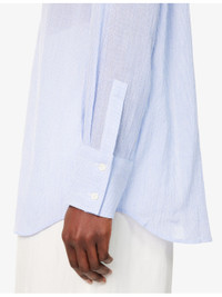 PRODUCT DETAILS - ANINE BING cotton-poplin shirt - 100% cotton - Exposed button fastening at front - Spread collar - Buttoned cuffs - Relaxed fit, collar, long sleeves, straight yoke at back, all-over striped print, curved hem - Machine wash at 30°C - True to size - Size small: length 30in / 77cm - Model is 5ft 10in/1.78m and wears a size small - Lightweight, stretchy Ref: R04495329