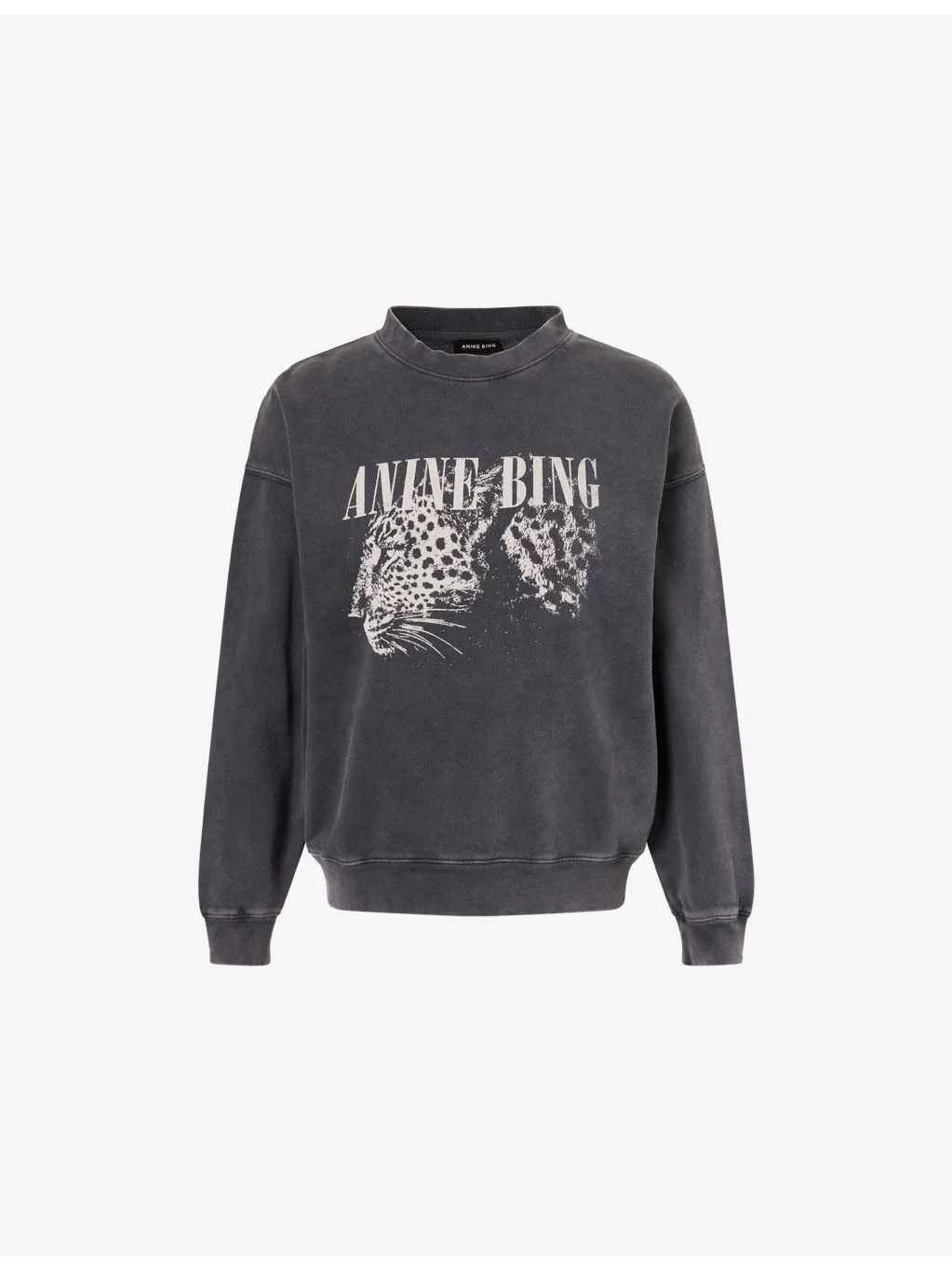 PRODUCT DETAILS - ANINE BING cotton-jersey sweatshirt - 100% cotton - Relaxed fit, round-neck, long sleeves, brand and leopard print at front, brushed interior, ribbed trims - Machine wash at 30°C - Made in Turkey - True to size - Model is 5ft 10in/1.78m and wears a size small - Midweight, stretchy Ref: R04567653