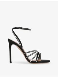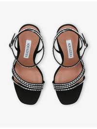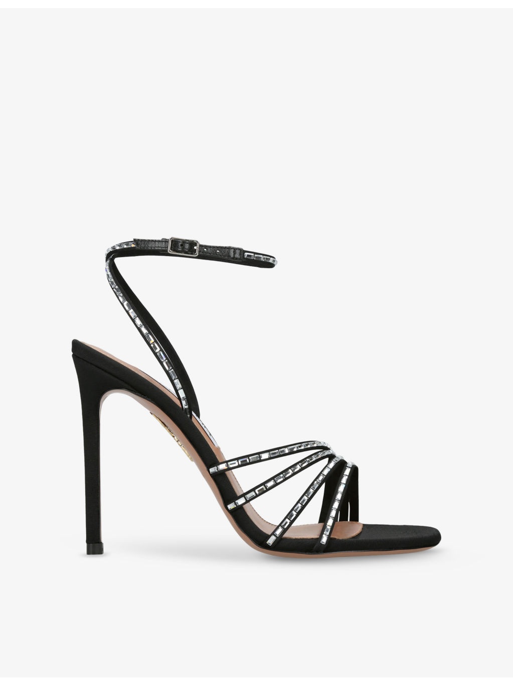 PRODUCT DETAILS - Aquazzura leather heeled sandals - 100% leather - Ankle-buckle fastening - Square open toe, adjustable strap, crystal embellishments, silver-toned hardware, branded footbed, high stiletto heel - Specialist leather clean - Made in Italy - Upper: 100% leather - Lining: 100% leather - Sole: 100% leather Ref: R04476541