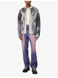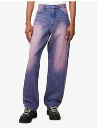 PRODUCT DETAILS - Awake NY denim jeans - 100% cotton - Exposed button and a concealed zip-fly fastening at front - Baggy fit, mid rise, five pockets, brand patch at back, all-over contrast top stitching, embroidered brad detailing at back, all-over colour wash effect - Machine wash cold - Size UK 32: rise 12.2in / 31cm, leg length 32.6in / 83cm, leg opening 17.3in / 44cm - Model is 6ft 2in/1.88m and wears a size UK 32 - Midweight, non-stretch Ref: R04460738