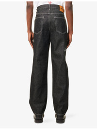 PRODUCT DETAILS - Awake NY denim jeans - 100% cotton - Exposed button and a concealed zip-fly fastening at front - Baggy fit, mid rise, five pockets, brand patch at back, all-over contrast top stitching, embroidered brad detailing at back - Machine wash cold - Size UK 32: rise 12.2in / 31cm, leg length 32.6in / 83cm, leg opening 17.3in / 44cm - Model is 6ft 2in/1.88m and wears a size UK 32 - Midweight, non-stretch Ref: R04460724