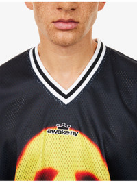 PRODUCT DETAILS - Awake NY mesh jersey top - 100% polyester - V-neck, long sleeves, graphic-print design at front and back, striped trims, breathable mesh, straight hem - Hand wash - Model is 6ft 2in/1.88m and wears a size medium - Lightweight, slight stretch Ref: R04545285
