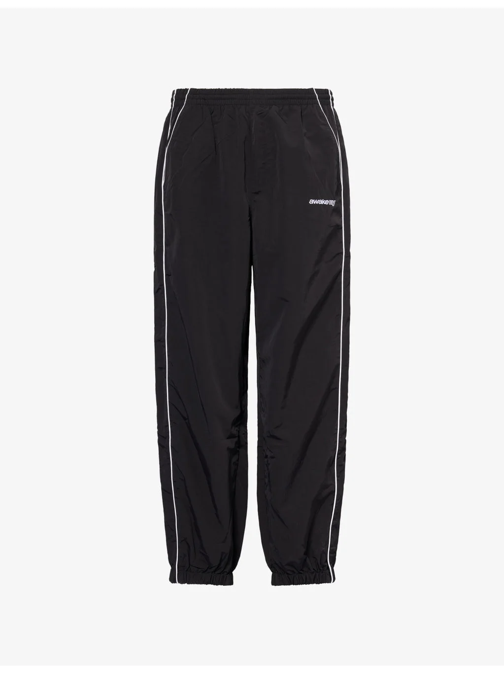 PRODUCT DETAILS - Awake NY shell track bottoms - 100% nylon; lining 100% polyester - Self-tie fastening at waist - Relaxed fit, mid-rise, wide leg, drawstring elasticated waistband, two slip pockets at front, one welt pocket at back, piping detailing, colour block design, elasticated cuffs, mesh lined - Machine wash at 30°C - Model is 6ft 2in/1.88m and wears a size medium - Lightweight, non-stretch Ref: R04545280