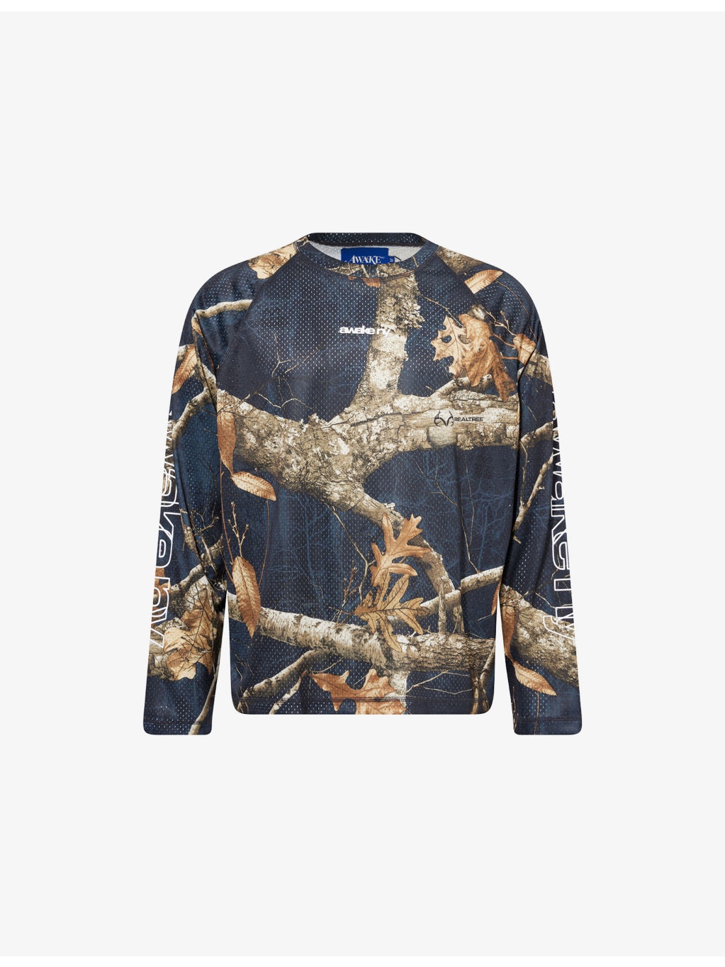 PRODUCT DETAILS - Awake NY woven T-shirt - 100% polyester - Relaxed fit, crewneck, raglan long sleeves, brand print at front and sleeves, all-over graphic print, all-over mesh texture - Machine wash at 30°C - Model is 6ft 2in/1.88m and wears a size medium - Lightweight, stretchy Ref: R04460717