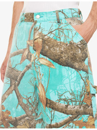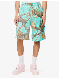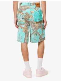 PRODUCT DETAILS - Awake NY denim shorts - 100% cotton - Exposed button and concealed zip-fly fastening at front - Relaxed fit, high-rise, wide leg, belt loops, five pockets, brand patch and embroidery at back, all-over graphic print - Machine wash cold - Size medium: rise 15in / 38cm, inside leg 9in / 24cm, leg opening 26in / 66cm - Model is 6ft 2in/1.88m and wears a size medium - Lightweight, slight stretch Ref: R04460719