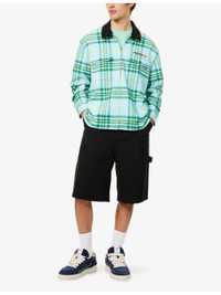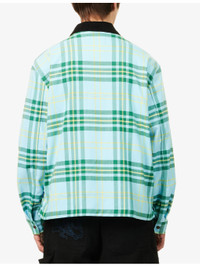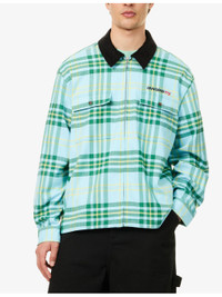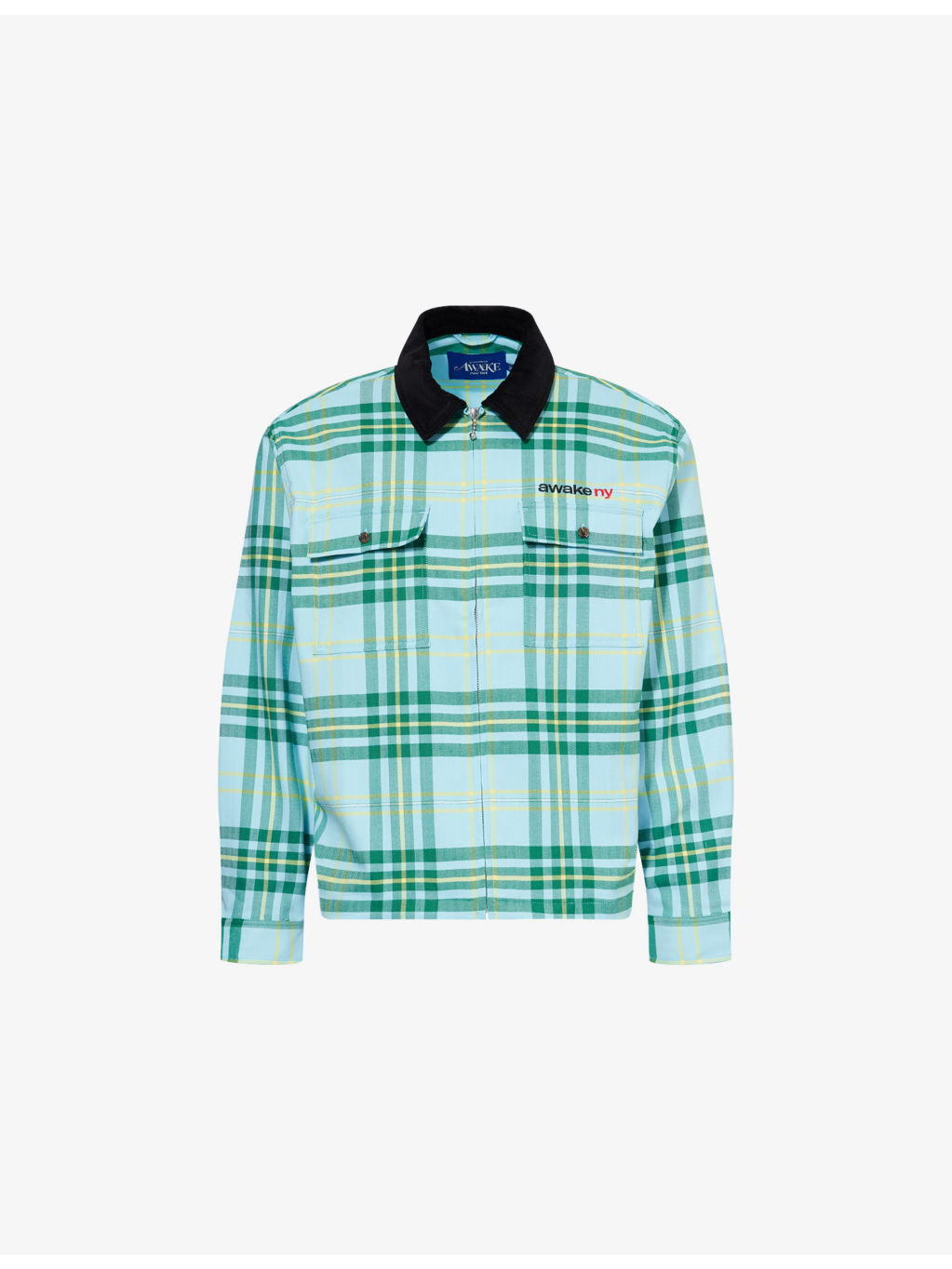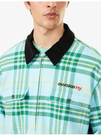 PRODUCT DETAILS - Awake NY stretch-woven shirt - 63% polyester, 34% viscose, 3% elastane - Concealed zip fastening at front - Spread collar - Buttoned cuffs - Relaxed fit, corduroy spread collar, long sleeves, buttoned cuffs, two buttoned pockets and brand embroidery at front, brand tab at side, all-over check print, all-over flannel texture, split at sides - Dry clean - Size medium: length 26in / 67cm, chest 48in / 122cm - Model is 6ft 2in/1.88m and wears a size medium - Lightweight, stretchy Ref: R04460709