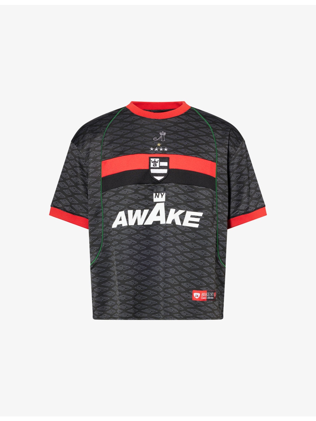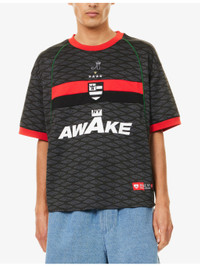 PRODUCT DETAILS - Awake NY jersey T-shirt - 100% polyester - Regular fit, crew neck, ribbed trim at neck, short sleeves, embroidered applique at front, logo print, contrast piping trims, jersey texture - Machine wash cold - Model is 6ft 2in/1.88m and wears a size medium - Lightweight, slight stretch Ref: R04498410