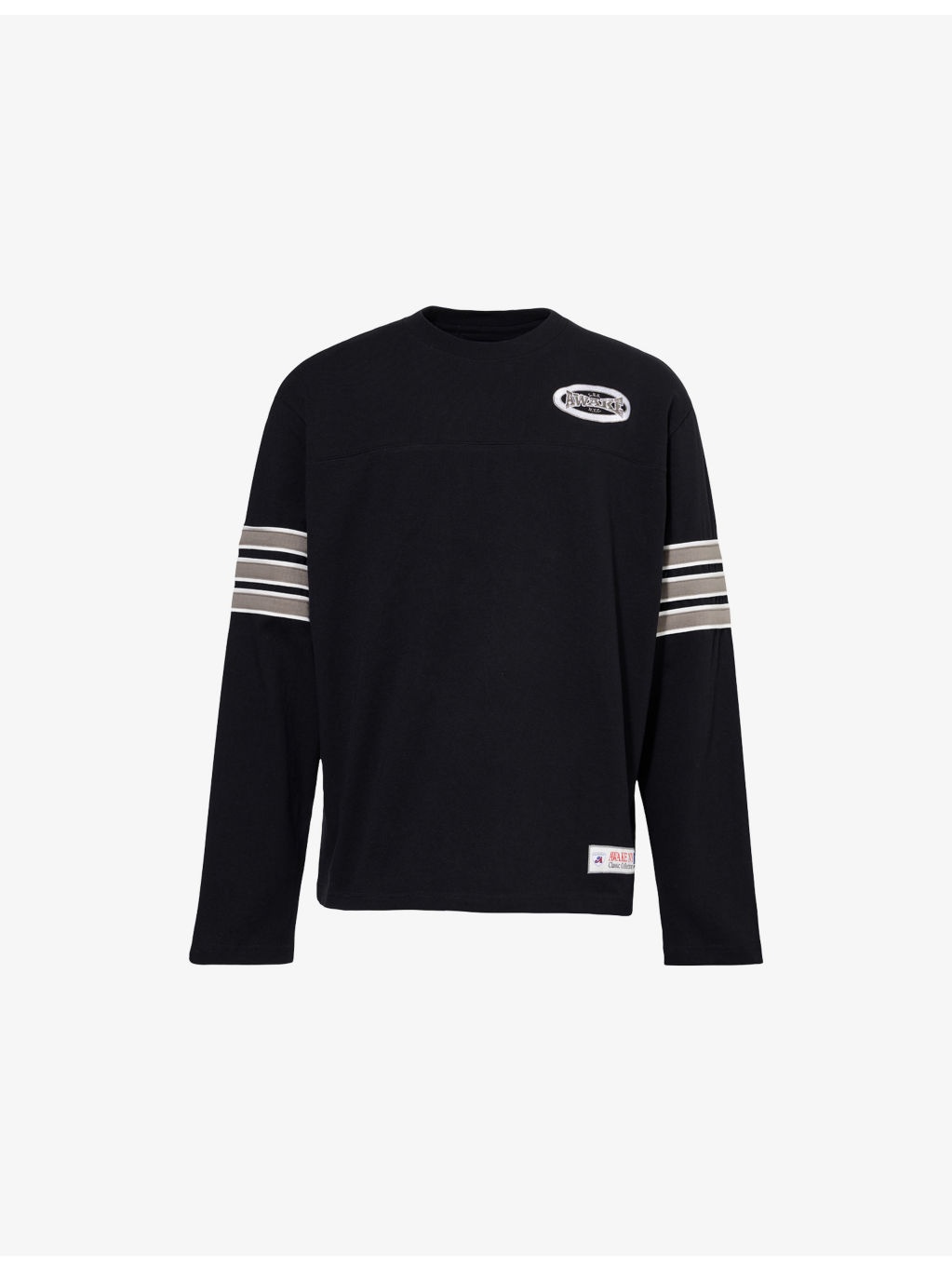 PRODUCT DETAILS - Awake NY cotton-jersey T-shirt - 100% cotton - Relaxed fit, ribbed crewneck, striped panels at long sleeves, brand embroidery and brand patch at front, split at sides - Machine wash at 30°C - Model is 6ft 2in/1.88m and wears a size medium - Lightweight, stretchy Ref: R04460729