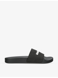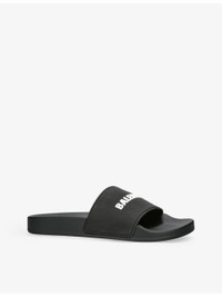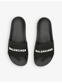 PRODUCT DETAILS - Balenciaga rubber sliders - 100% rubber - Slips on - Open round toe, logo-embossed front strap, moulded footbed - Sponge clean - Upper: 100% rubber - Lining: 100% rubber - Sole: 100% rubber Ref: R04133303